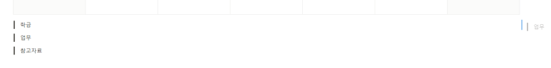 인용블록을 3개 생성해 업무 블록과 참고자료 블록을 왼쪽 마우스로 잡아서 학급 블록 옆으로 옮겨가면 아래로 정렬이 아니라 3개의 블록을 3분할로 정렬할 수 있게 된다.