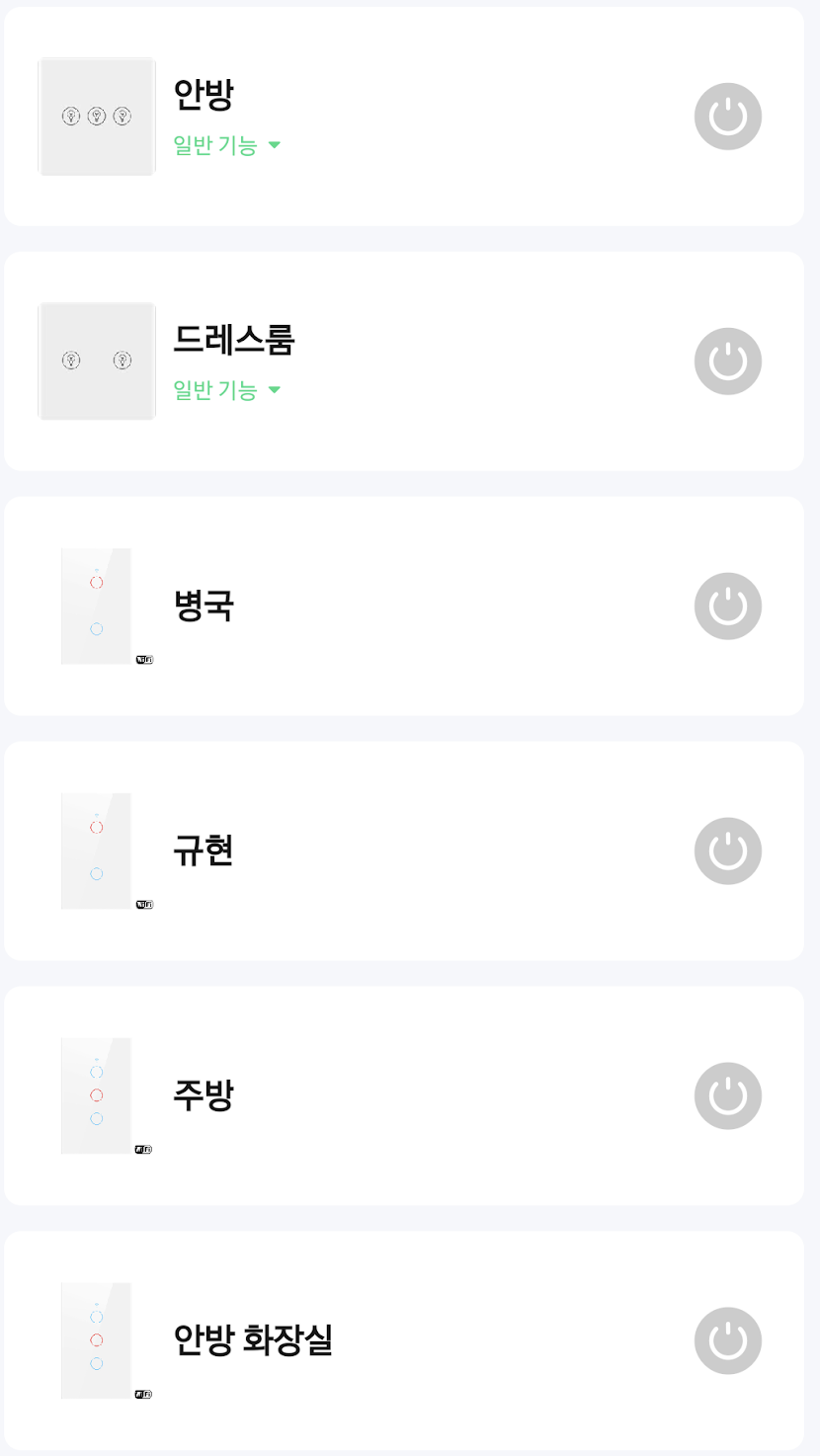 거실 월패드는 기능이 많아서 IoT 스위치로 교체를 못 했다. 그래서 거실 조명은 원격으로 온오프를 할 수 없는 상황이다.