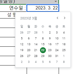 출력 전에 연수 실시일을 더블클릭하여 캘린더에서 선택하고 오른쪽에 적혀있는 방법대로 출력하면 된다.