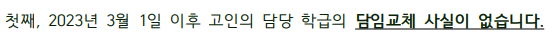 4. 3월 1일 이후 담임교체 사실이 없다.