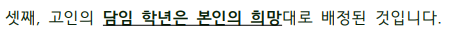 1.고인의 담임 학년은 본인의 희망대로 배정된 것입니다.