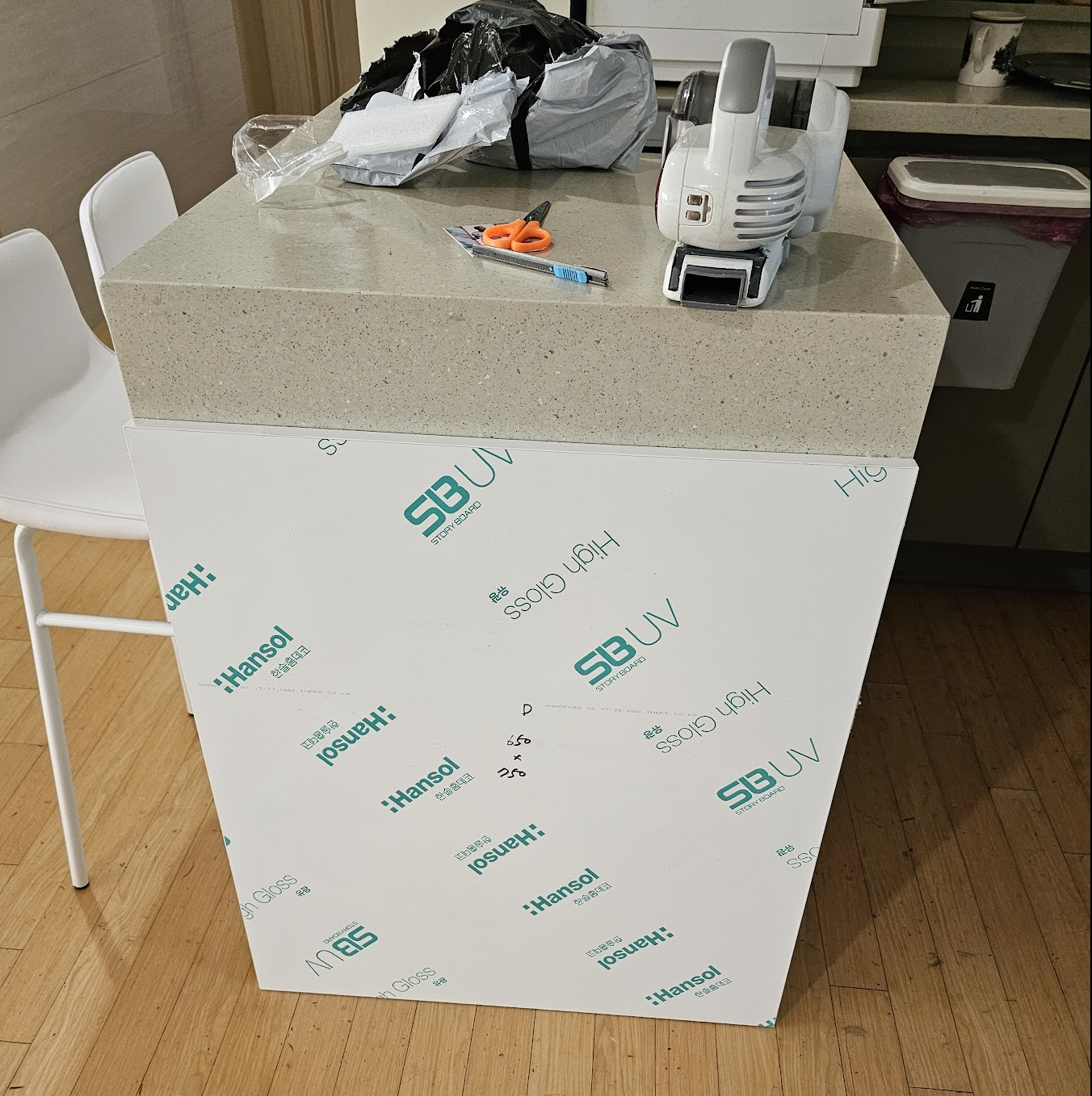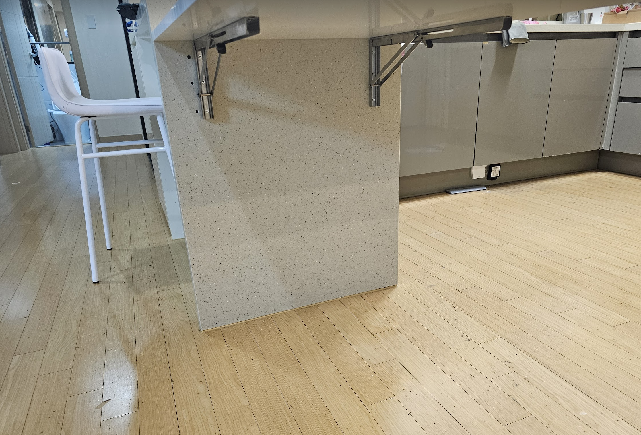 이 때 아일랜드와 상판에 유격이 생기지 않게 잘 밀착해서 고정한다.