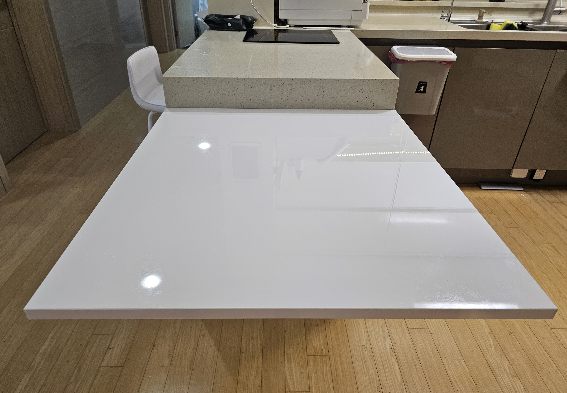 기존에 있던 아일랜드 약 1000mm에 하이그로시 상판 650mm를 더해 1600의 4인 식탁이 완성되었다.