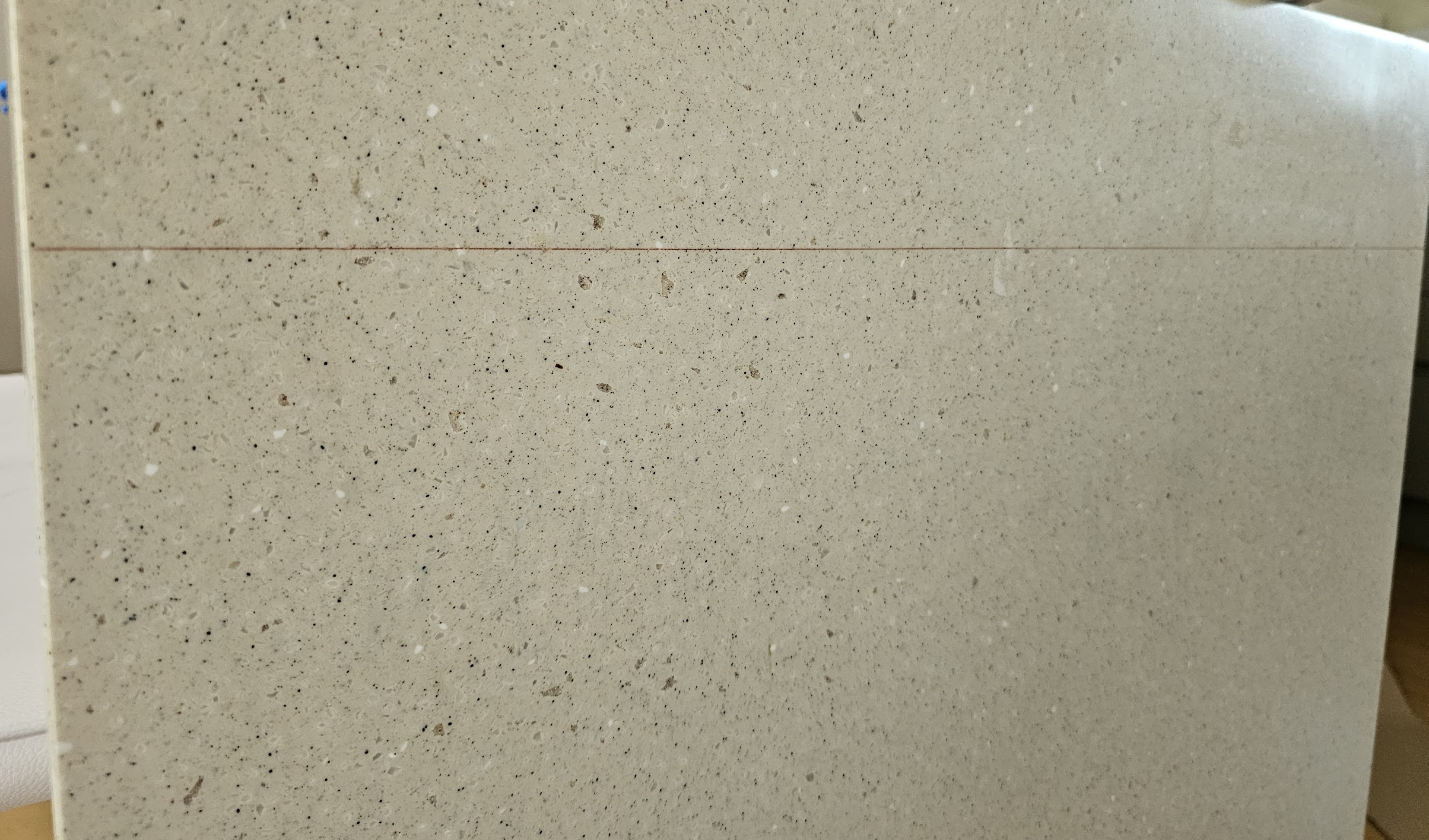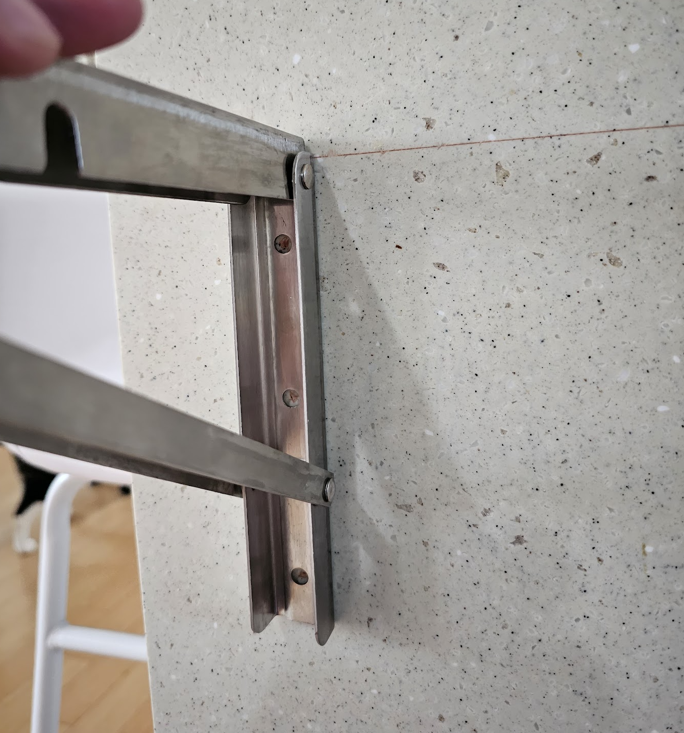 주문한 상판을 부착할 아일랜드 벽면에 밀착 시킨 후 선을 긋는다.