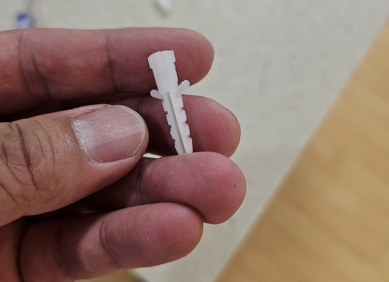 타공한 구멍에 칼블럭을 넣는다.(고무망치로 살살 쳐서 넣어주면 된다.)