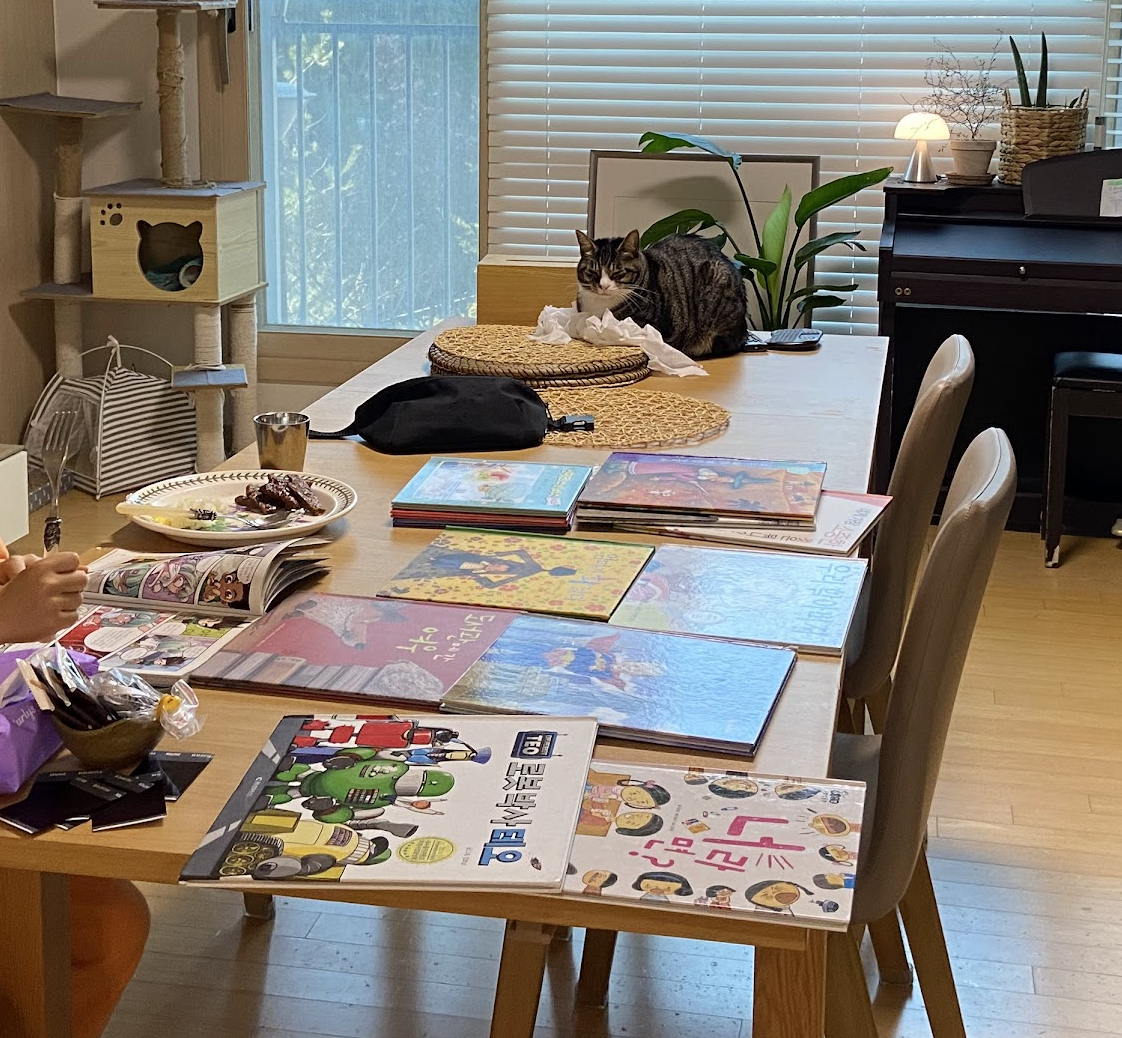 주방에서 사용하던 식탁을 없앴다. 식탁을 없애고 소파와 티비 사이의 공간에 커다란 테이블을 놓았다.