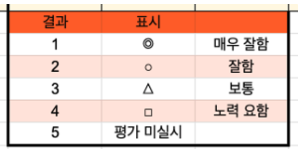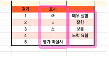 이렇게 평가 결과를 입력하면 오른쪽에 정해둔 기호로 자동으로 변환된다.