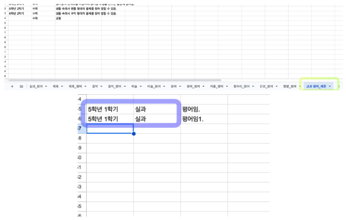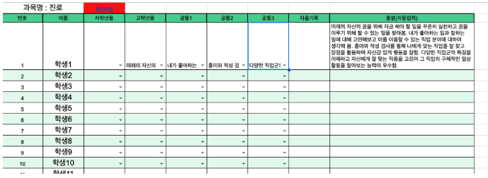 | [스프레드시트]구글 시트로 전과목 평어, 행발, 자율, 진로 평어 자동화 (1) | 2023.11.06 |