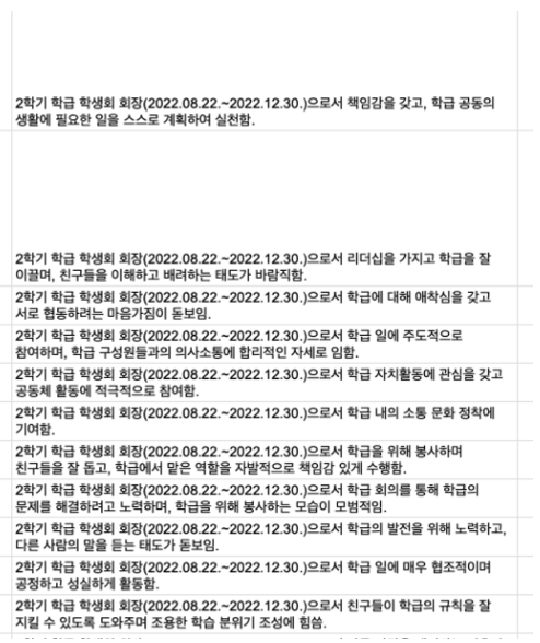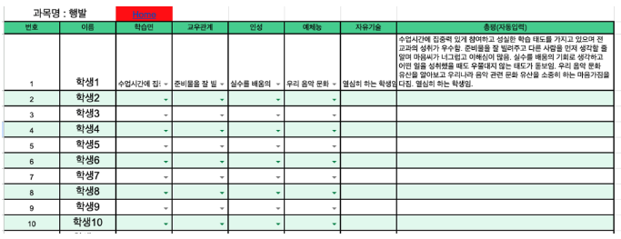 이렇게 모든 과목에 대해 평가 결과를 입력하면 평어가 자동 완성된다.