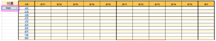이 시트에서 선택한 학년 학기에 따라 교과 평어의 내용이 달라진다.
